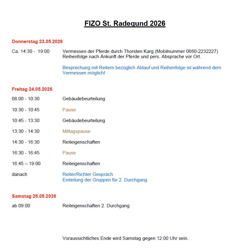 Vom 24. – 25. April 2026 findet bei uns in St. Radegund wieder eine FIZO statt.